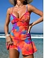 Per donna Costumi da bagno Intero Tankini Monokini Gonna Costume da bagno Controllo della Pancia Vita alta Snello Senza schiena Elegante Vacanza Floreale Scollo a V Senza Maniche Costumi da bagno