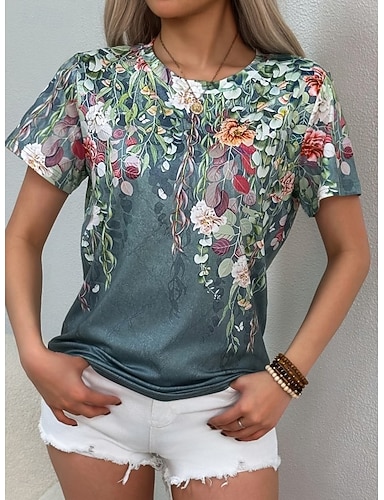 Per donna Maglietta Stampato Floreale Grafico Piante Vintage Elegante Classico Manica Corta Girocollo Top lunghi Quotidiano Weekend Blu Nero Bianco Rosa Verde scuro Estate Primavera