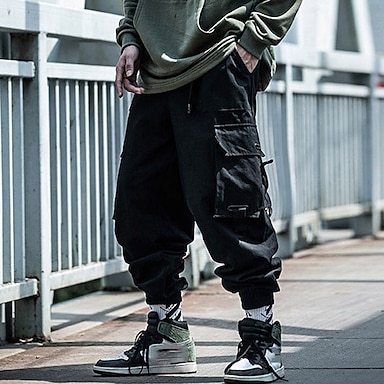Per uomo Pantaloni cargo Jogging Pantaloni Abbigliamento tecnico A cordoncino Vita elastica Multi tasca Color Block Alfabetico Ricamato Informale Giornaliero Streetwear Hip Hop Nero
