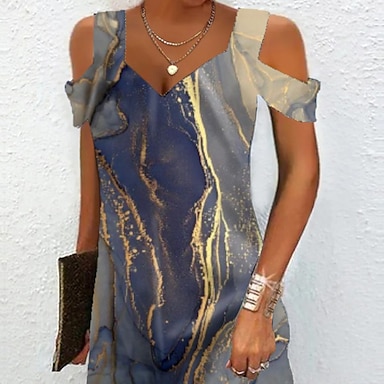 Abito Mini Femminile A Line Abito T Shirt Abito Tee Abito Casual Vacanza Regolare Fit Grafica Paisley Maniche Corte Collo a V Blu Beige Estate Primavera