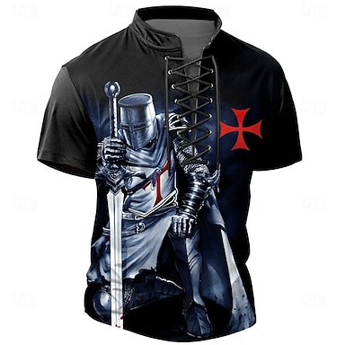 camicia grafica da uomo cavalieri templari stampe moda basic casual henley tee outdoor daily going blu marrone grigio manica corta croce nera con spada e scudo cotone
