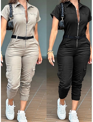 Per donna Tuta Attivo Tinta unica Manica Corta Colletto a Camicia Cerniera Quotidiano Vacanza Vestibilità regolare Nero Grigio Primavera