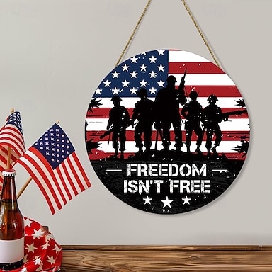 Targa per la porta americana per il 250° anniversario, bandiera nazionale americana patriottica del 4 luglio con ghirlanda "We the People", decorazione da parete in legno per il giorno