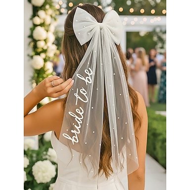 Cerchietto con velo decorato con perle da donna, fiocco in tulle di poliestere con scritta "bride to be", elegante accessorio per capelli da sposa per matrimoni, addii al nubilato e feste di addio al nubilato