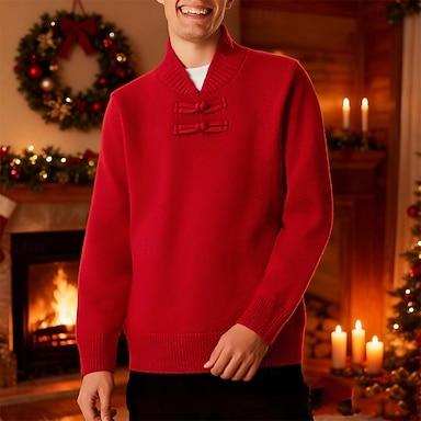 Per uomo Maglioni di Natale Maglione Maglione a maglia A Coste Maglia Top Regolari Lavorato a maglia Bottone cinese Semplice Collo alla coreana Vintage Casual Natale Vacanza Abbigliamento Autunno