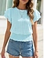 Per donna Taglia grande Top traforato Maglietta Elastico in vita Elegante Manica Corta Manica a Balze Girocollo Top Regolari Uscire Bianco Rosa Azzurro Estate Primavera