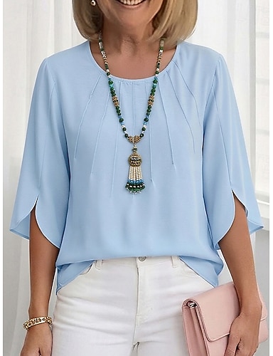 Per donna Top in chiffon Tinta unica Elegante Mezza Manica Asimmetrico Top lunghi Blu marino Estate Primavera