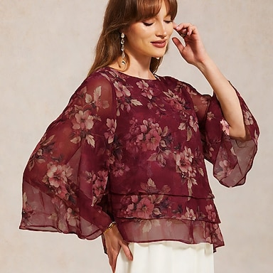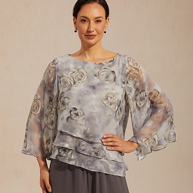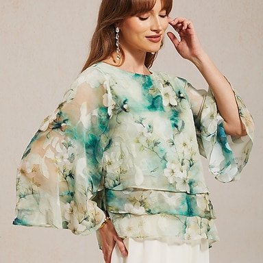Per donna Camicetta trasparente Top in chiffon Stratificato Floreale Elegante Manica a Campana Girocollo Quotidiano Ospite di nozze Abbigliamento da resort Azzurro Estate Primavera Autunno