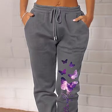 Per donna Pantaloni da tuta Joggers Vacanza Vintage Stile Etnico Lunghezza intera Vita Alta Farfalla Coulisse Tasca Pile Calore Termico Antivento Comodo Elasticizzato Vacanza Formale Streetwear