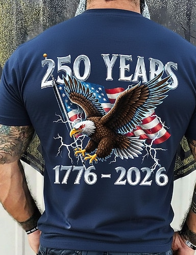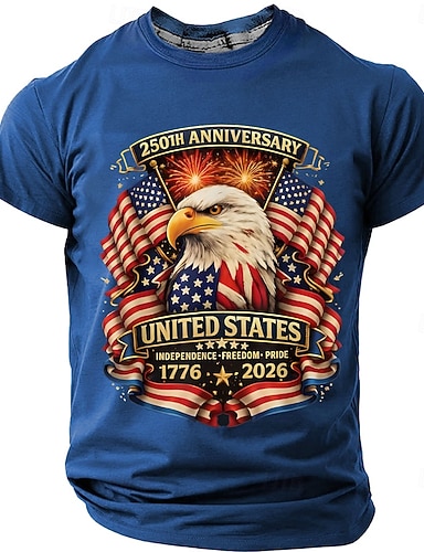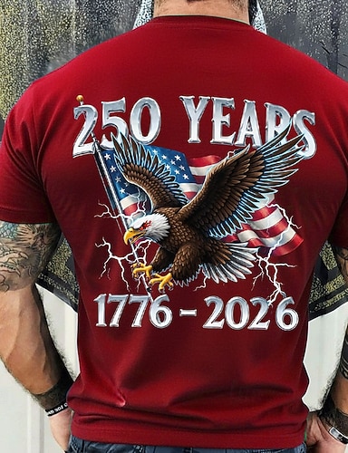4 luglio 2026 250° Giorno della Memoria Maglietta a Manica Corta in Stile Ufficiale con Stampa 3D della Bandiera USA per Uomini