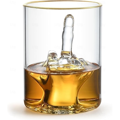 Divertente bicchiere da whisky – bicchiere premium per whisky e liquori – vetro senza BPA con lussuoso bordo dorato – accessorio ideale per il bar di casa, perfetto per la "man cave" o come regalo