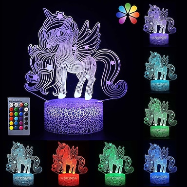 luce notturna unicorno 3d luce notturna per bambini 7/16 cambia colore telecomando touch dimmer modalità gradiente san valentino batterie alimentate usb 1pc