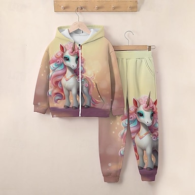 Da ragazza 3D Cartoni animati Unicorno Set felpa e leggings Set Manica lunga Stampa 3D Autunno Inverno Attivo Di tendenza Giornaliero Bambino 3-12 anni Girocollo Esterno Da mare Appuntamento Standard