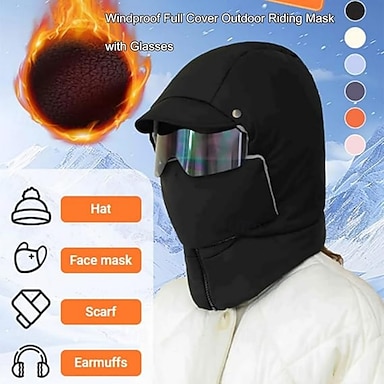 Maschera invernale antivento con copertura completa per equitazione all'aperto, con paraorecchie militare foderato in pile di vetro, protezione per il viso unisex per il freddo, cappello da