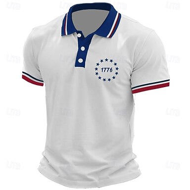 4 luglio 2026 250° Per uomo Bandiera Americana Polo Manica Lunga Magliette polo Camicie con Colletto Casual Anniversario Abbigliamento quotidiano Abbigliamento da festa Stampa 3D Bottoni Autunno