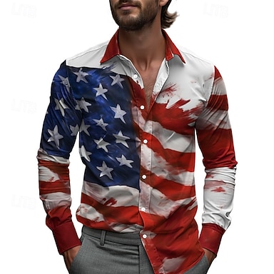 Camicia Patriottica da Uomo Bandiera Americana per il Giorno dell'Indipendenza Camicia con Bottoni Manica Lunga Casual Vacanza Quotidiana Estate Primavera e Autunno Colletto Grande Colletto a Fascia