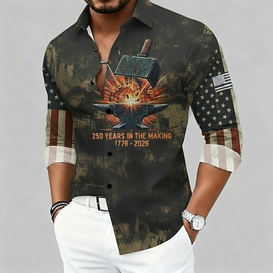Giorno dell'Indipendenza Americana Per uomo 4 luglio, 250° anniversario degli Stati Uniti Bandiera Americana Patriottico Camicia con Bottoni Manica Lunga Casual Quotidiano Vacanza Estate Primavera