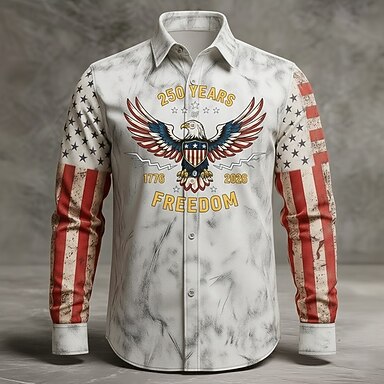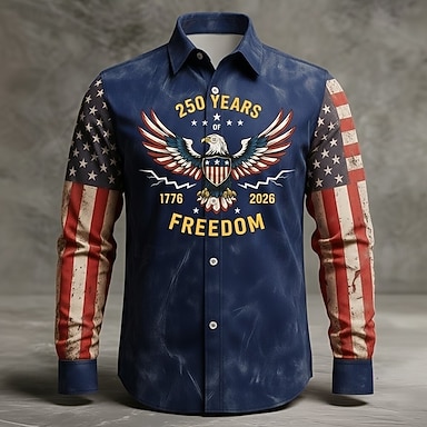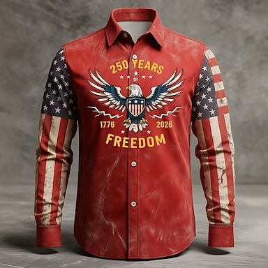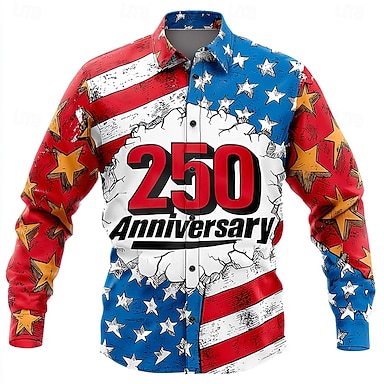 Giorno dell'Indipendenza Americana Per uomo 4 luglio, 250° anniversario degli Stati Uniti Bandiera Americana Bandiera Nazionale Camicia Camicia con Bottoni Manica Lunga Casual Abbigliamento