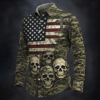 Per uomo Teschio 4 luglio, 250° anniversario degli Stati Uniti Croce Camicia Camicia con Bottoni Manica Lunga Vintage Retrò Ferie Casual Quotidiano Primavera Autunno Collo ripiegato Stampa 3D camicie