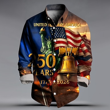 Per uomo 4 luglio, 250° anniversario degli Stati Uniti Statua della Libertà Bandiera degli Stati Uniti Camicia Camicia con Bottoni Manica Lunga Patriotico Ferie Casual Quotidiano Primavera Autunno