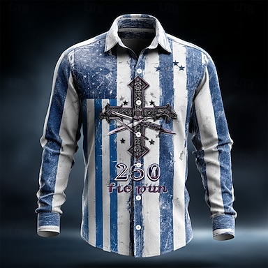 Per uomo 4 luglio, 250° anniversario degli Stati Uniti Croce Bandiera degli Stati Uniti Camicia Camicia con Bottoni Manica Lunga Patriotico Ferie Casual Quotidiano Primavera Autunno Collo ripiegato