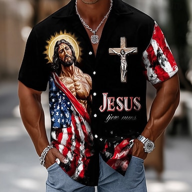 Per uomo 4 luglio, 250° anniversario degli Stati Uniti Croce Bandiera degli Stati Uniti Camicia Camicia con Bottoni Manica Lunga Vintage Retrò Ferie Casual Quotidiano Primavera Autunno Collo ripiegato