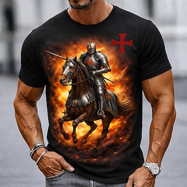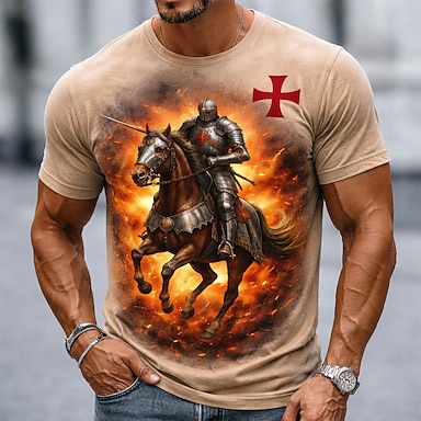t-shirt da uomo con croce da cavaliere templare inginocchiato, guerriero medievale, fuoco, dark fantasy, gotico, streetwear, grafica, girocollo, maniche corte, regalo di compleanno per uomo,