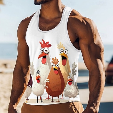 Per uomo Grafico Animale Maglietta smanicata Maglietta senza maniche per uomo Senza Maniche maglietta Stampa 3D Girocollo Camicia Moda Designer Muscolo Quotidiano Palestra Corsa Rosso Primavera