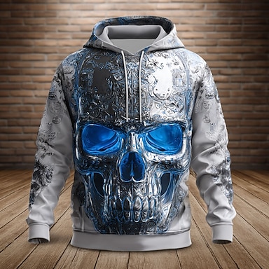 Set in felpa 3D Skull da uomo 2 pezzi con felpa con cappuccio felpa a manica lunga pantaloni lunghi casual giorno per giorno abbigliamento atletico stampa 3D primavera autunno inverno nero