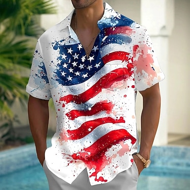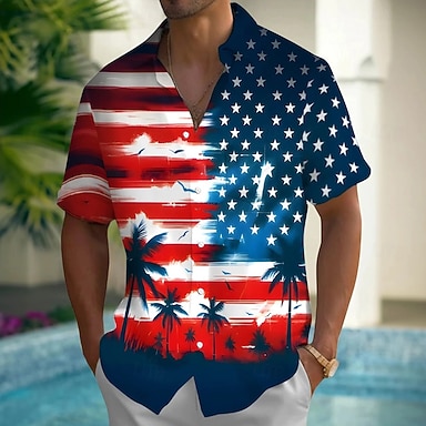 Camicia lettera croce con bandiera americana per uomo per il Giorno dell'Indipendenza camicia button-up maniche corte moda streetwear designer quotidiana uscire nel weekend estate primavera collo a