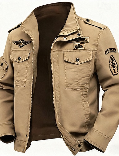 Per uomo Giacca utility Giacca Cargo Giacca Casual Vacanza Quotidiano Traspirante Tasca Primavera Autunno Bandiera Nazionale Moda Classico Collo alla coreana Regolare Nero Cachi Verde militare Giacca