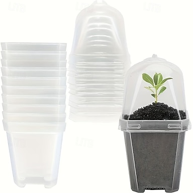10 pezzi di vasi trasparenti per piantine con cupole di umidità, contenitori quadrati in plastica con coperchi e basi, traspiranti e termoisolanti, adatti per piantine, verdure, piante grasse