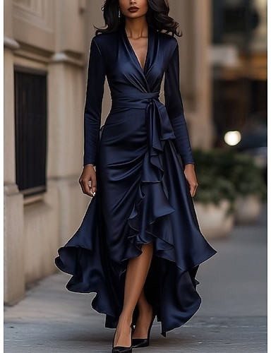 Per donna Abito Midi Abito a Portafoglio Abito aderente Abiti semi formali Ufficio Vestibilità regolare Semplice Manica Lunga Scollo a V Nero Vino Blu scuro Primavera Autunno