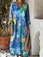 Per donna Abito Lungo Maxi Abito Vestito Casual Abito Floreale Elegante Moda Moderno All'aperto Quotidiano Uscire Vestibilità comoda Floreale Grafico Manica Lunga Scollo a V Blu Rosa brillante Rosa