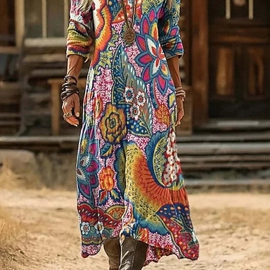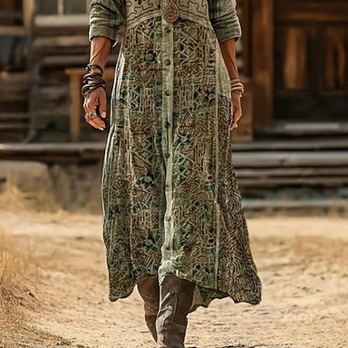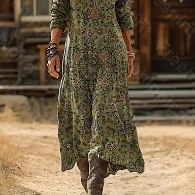 Linea ad A Lunghezza alla caviglia Vestito da Festa Abito da Cocktail Abito da invitata a nozze Abito da cerimonia per signora Manica Lunga Scollo a V Elegante Vintage Festa Serata Formale