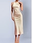 Per donna Abito Midi Abito in Raso Vestito da Festa Elegante Moda Moderno All'aperto Vacanza Uscire Vestibilità regolare Semplice Senza Maniche Girocollo Albicocca Estate Primavera Autunno
