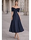 Abito da festa lungo fino al tè in stile sirena/trumpet abito da cocktail abito per invitati a matrimoni abito per madri della sposa maniche corte scollatura off-shoulder elegante formale spandex con
