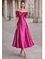 Linea ad A Lunghezza Tè Abito Formale Abiti da Cocktail Elegante Manica Corta Senza Spalle Matrimonio Formale Raso con Fiori 3D