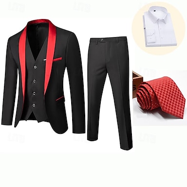 Per uomo Blazer+Gilet+Pantaloni eleganti Blazer Affari Lavoro Matrimonio Moda Streetwear Autunno Inverno Tergal Tinta unica 3 pezzi Monopetto Giacca Nero Champagne Rosa Borgogna
