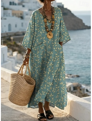 Per donna Abito maxi Abito a Tubino Casual Spiaggia Uscire Vestibilità comoda Floreale Grafico Manica Lunga Scollo a V Giallo Verde Cachi Estate Primavera