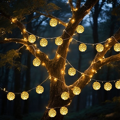Luci a stringa sferiche in vimini da 4 cm, stile favola, alimentate a batteria da 10/20 LED, adatte per Natale, matrimonio, San Valentino, feste, casa, giardino, balconi, verande e vetrine.