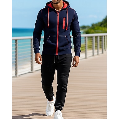 Per uomo Felpa con cappuccio Tuta da Ginnastica Tuta da 2 pezzi Coulisse Con zip Blocco di colori Completo Abbigliamento Autunno Inverno Giallo Rosso Lavoro All'aperto Viaggio Leggero Di tendenza