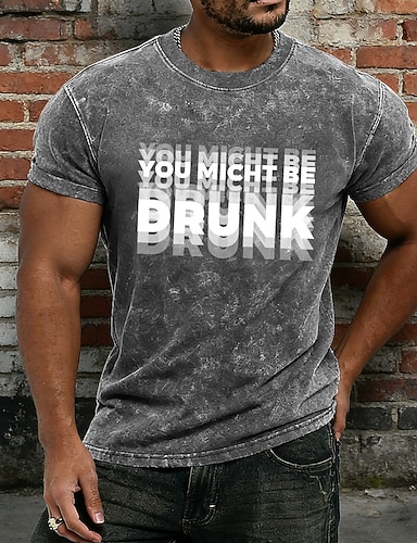 T-shirt vintage da uomo con lavaggio acido "potresti essere ubriaco" grafica a doppia visione divertente umorismo da bere maglietta in misto cotone e poliestere lavaggio minerale maglietta da festa