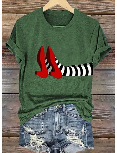T-Shirt da donna Grafica Mostro Streghe Vintage Elegante Classica Maniche Corte Collo Giro Regular Tops Stampa Giornaliera Weekend Nera Bianca Arancione Khaki Grigio Chiaro Estate Primavera Autunno