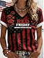 maglietta da donna Red Friday con grafica e scritta, elegante, classica, casual, maniche corte, scollo a V, top regolari, per tutti i giorni, per uscire, per il fine settimana, nero e rosso