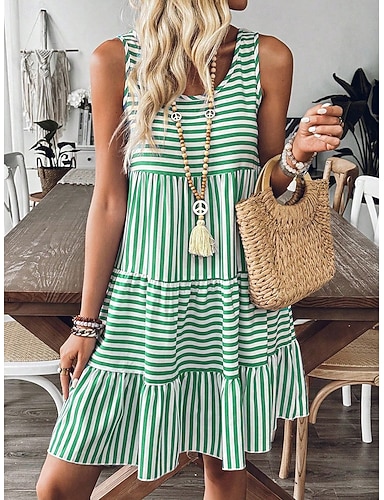 Per donna Mini Abito Abito a trapezio Vacanza Casual Quotidiano Vestibilità regolare Grafico Geometrico Senza Maniche Girocollo Giallo Viola Verde Estate Primavera