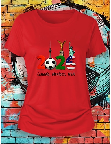 Maglietta da Donna World Soccer Match 2026 Stampa Grafica Lettera Elegante Classica Casual Maniche Corte Collo Tondo Regular Top Giornalieri Blu Nero Bianco Rosso Estate Primavera