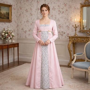 Rinascimento 19° secolo Periodo di reggenza Vestito Lunghe Principessa Gentildonna Floreale Due Pezzi Costume Per donna Reale Halloween Carnevale Mascherata Fiera Rinascimentale Festa a tema retrò
