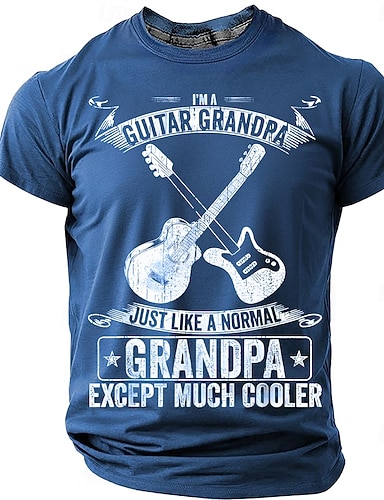 Maglietta da uomo "I'm a guitar grandpa just like a normal grandpa except much cooler" con chitarre incrociate, stile vintage, effetto invecchiato, retrò, grafica, vestibilità regolare, regalo per la