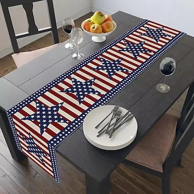 1 tovaglietta da tavolo 33 cm x 275 cm, motivo a stelle blu e bianche, tema del giorno dell'indipendenza, 4 luglio, decorazione patriottica per feste in cucina